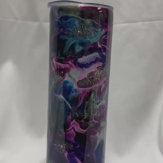 20 oz double wall stainless steel tumbler. Straw and lid included.